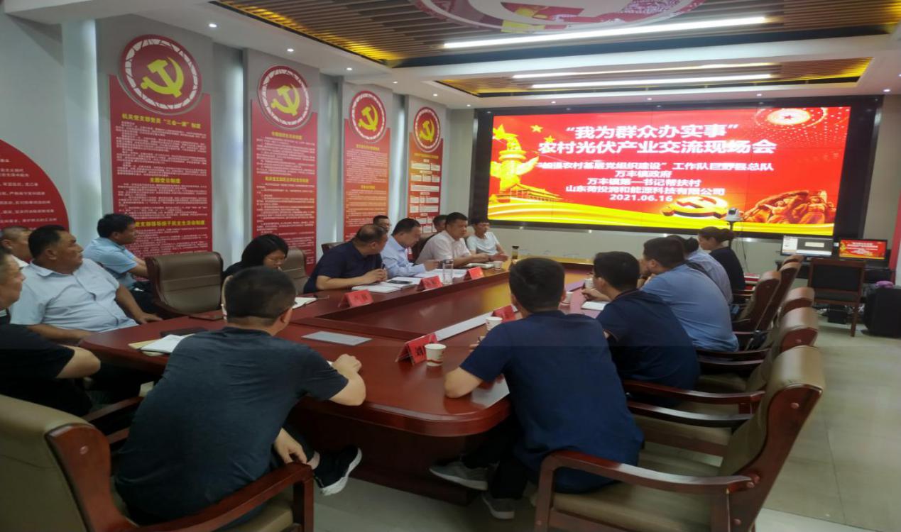 6月16日,山東菏投潤和能源科技有限公司副總經(jīng)理崔巍、張培永前往巨野縣萬豐鎮(zhèn)鎮(zhèn)政府與“加強(qiáng)農(nóng)業(yè)基層黨組織建設(shè)工作隊(duì)”巨野縣總隊(duì)副總隊(duì)長閆建群、唐亮,萬豐鎮(zhèn)政府相關(guān)負(fù)責(zé)人,各村鎮(zhèn)省派市派第一書記、幫扶村負(fù)責(zé)人等展開座談會,圍繞“我為群眾辦實(shí)事”農(nóng)村光伏產(chǎn)業(yè)展開深入交流,并實(shí)地查看巨野縣新農(nóng)村建設(shè)情況。